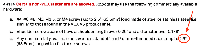 I think you are just reading too far into the rule. It is only saying that you cannot use any nut, washer, or spacer that is above 2.5 inches long.