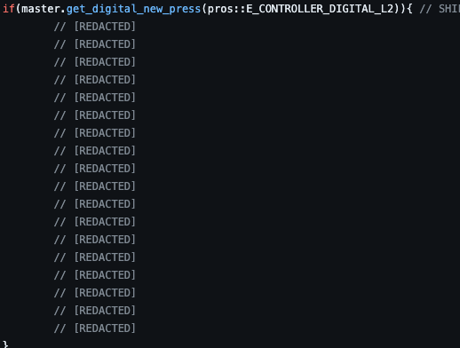 With the end of the Spin Up season, might as well post code. Heres most of the code Aggie Robotics used for worlds. pls dont laugh